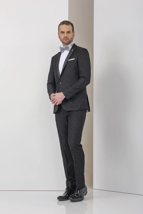 - > Terno Raffer Jacquard Preto Superslin Cerimonial e Tuxedos